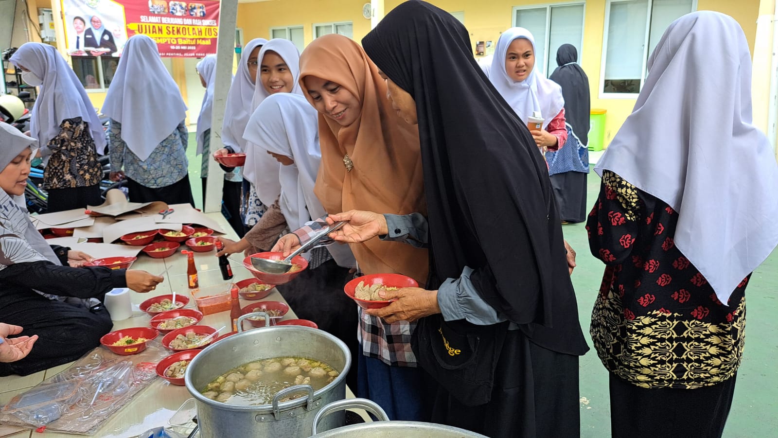 Tangerang Selatan (26/05) - Komite SMP Tahfizh Quran Baitul Maal mengadakan makan bakso bersama, usai siswa siswi selesai Ujian Sekolah kelas 9 pada Jum'at (26/05/2023). Di lapangan sekolah SMPTQ Baitul Maal.