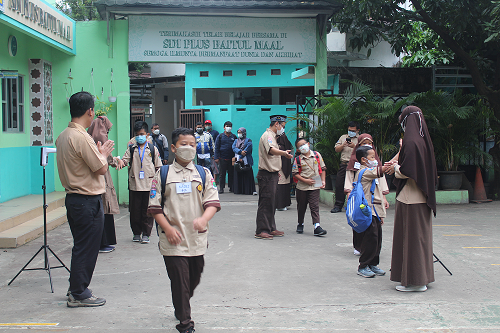 Pondok Aren (13/07)--- Rabu 13 Juli 2022 menjadi hari pertama masuk sekolah SD Islam Plus Baitul Maal. Alhamdulillahirobbil A’lamiin tahun ajaran baru ini SDIP Baitul Maal menjalankan Pembelajaran Tatap Muka (PTM) 100 persen dengan tetap disiplin menerapkan protokol kesehatan guna mencegah penyebaran Covid-19 di lingkungan sekolah.