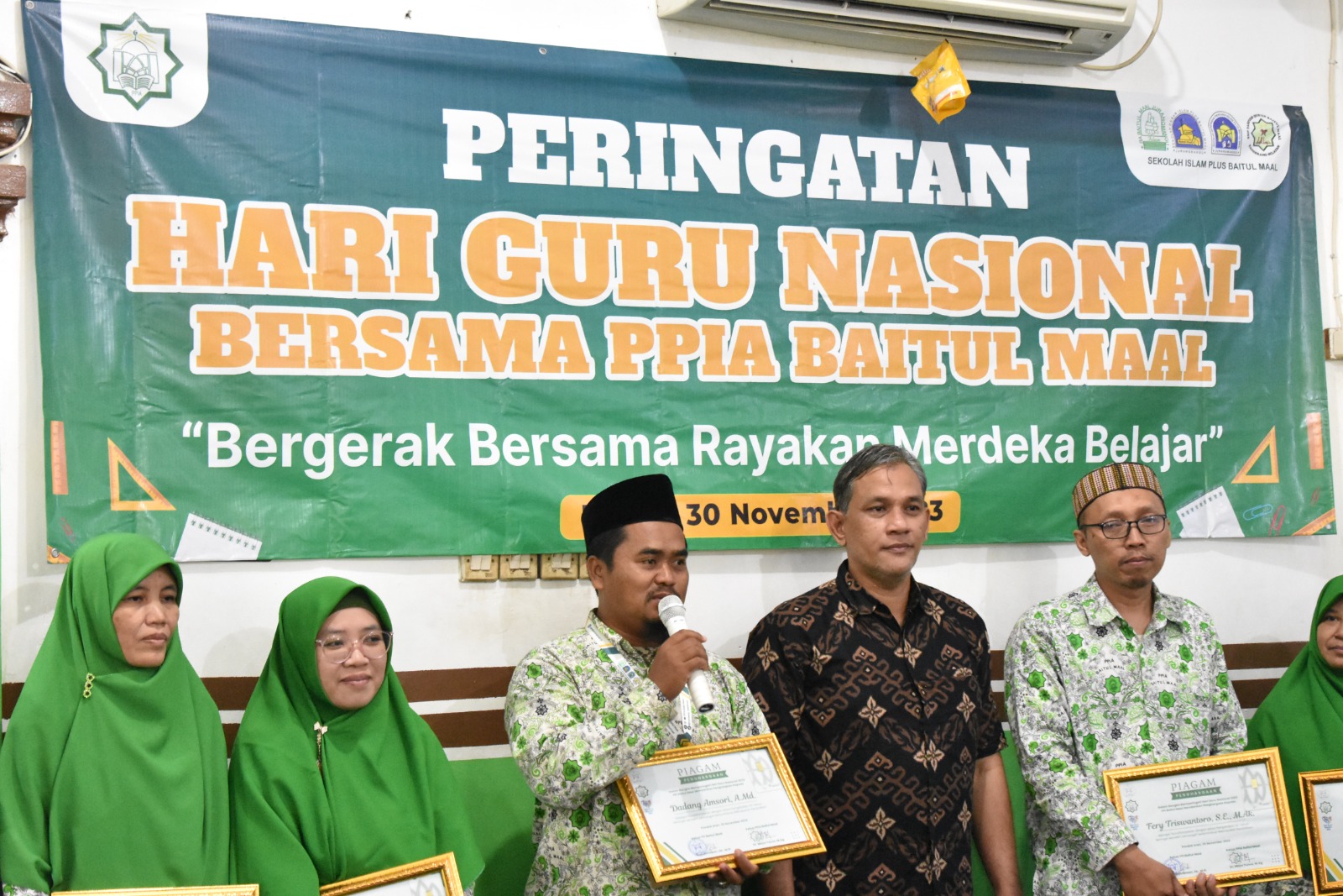 Pondok Aren (30/11) - YPI Baitul Maal memberikan penghargaan melalui kegiatan Peringatan Hari Guru Nasional 2023 pada Kamis, 30 November 2023. Sebanyak 17 Guru gelombang kedua yang mendapat apresiasi dan penghargaan adalah guru yang mengabdi selama lebih dari 20 tahun mengajar di Sekolah Islam Plus Baitul Maal.